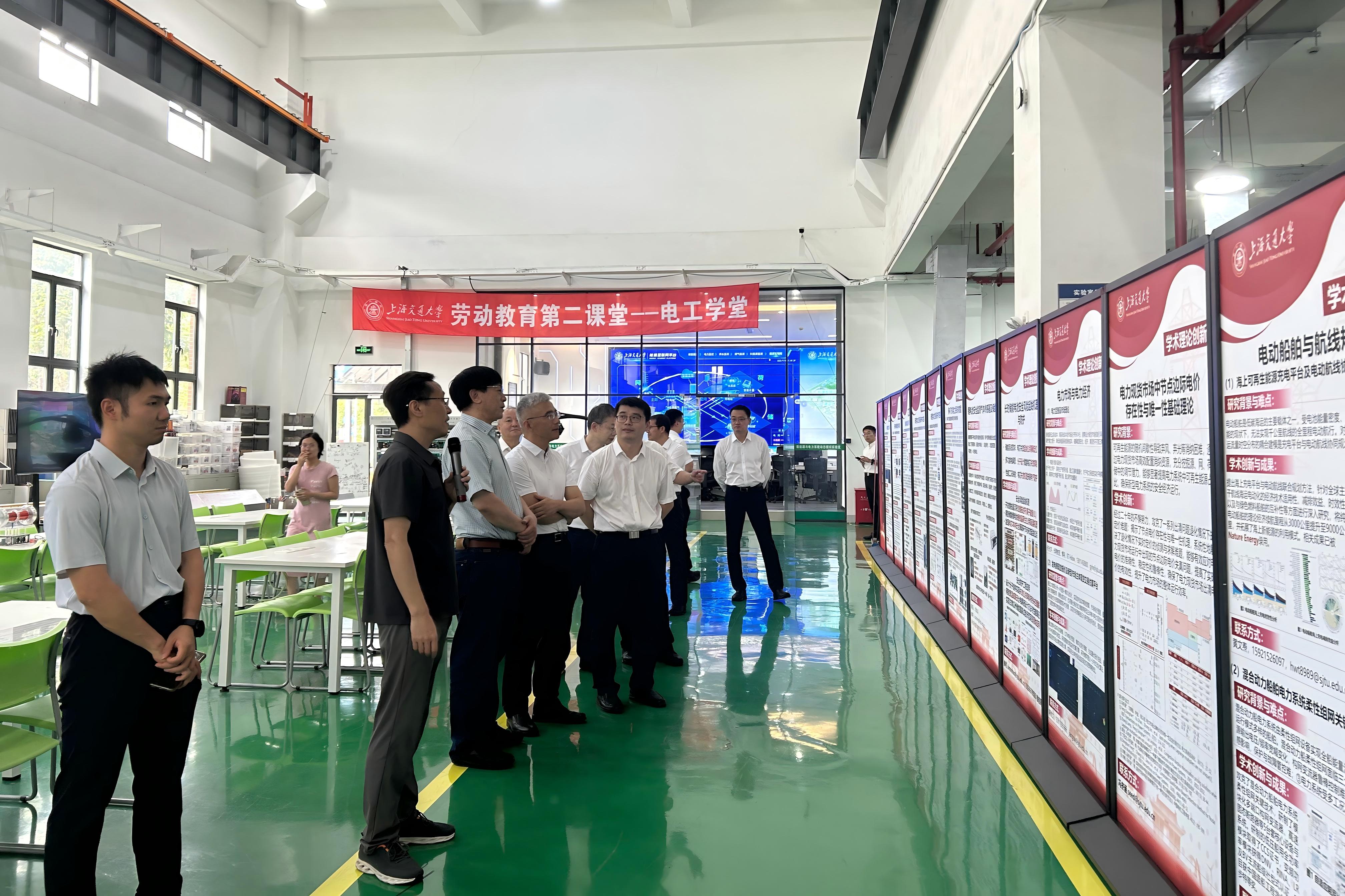 参观过程中,李劲湘详细介绍了电气学科的发展历程、专业建设与校友文化。在参观能源互联网示范平台时,来访嘉宾跟随现场老师的讲解深入了解了校园综合能源智慧管理系统、新能源硬件系统和科研成果展示系统,并亲身体验“零碳校园”的创新理念。随后,来访嘉宾参观了国家能源智能电网(上海)研发中心,详细了解了学院在智能电力设备、新能源并网与微网、风光储输协调控制、新型电力系统、电网安全稳定运行、电网数字化转型、能源互联网、科普基地等方向取得的重要成果。金炜对研发中心紧跟国家战略、深化产学研融合的创新模式给予了高度评价。